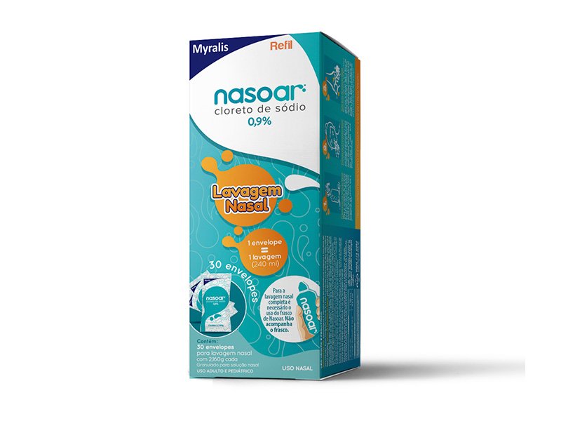 Quero participarNasoar Refil (Cloreto de Sódio 0,9%) pó para lavagem nasal, envelopes com 2,160g cada - Indicado para a fluidificação e descongestão nasal, coriza, sinusite e rinite. Não Acompanha frasco aplicador de 240mL. NASOAR age mecanicamente sobre a mucosa nasal, fluidificando e removendo todo o muco ali presente, resultando na descongestão local. Este medicamento é contraindicado em caso de hipersensibilidade aos componentes da fórmula. Este medicamento é contraindicado para menores de 4 anos.