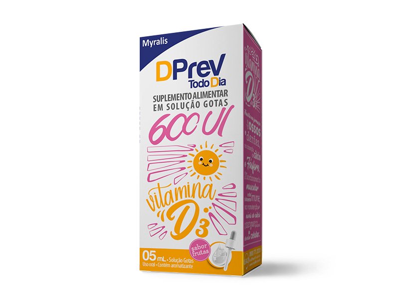 Quero participarDPrev Todo Dia é um suplemento a base de vitamina D3 apresentado em solução com 600UI de vitamina D e o delicioso sabor de frutas. A vitamina D é conhecida por: auxiliar a formação de dentes e ossos, auxiliar na absorção de cálcio e fósforo, auxilia no funcionamento do sistema imune e no funcionamento muscular.